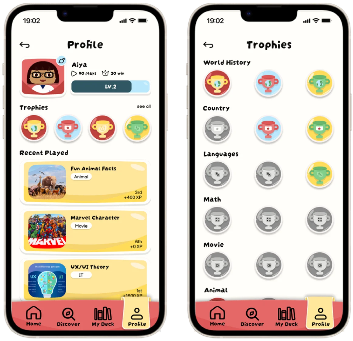 Users can collect trophies in any deck, and inspiring them to learn more across other decks as well